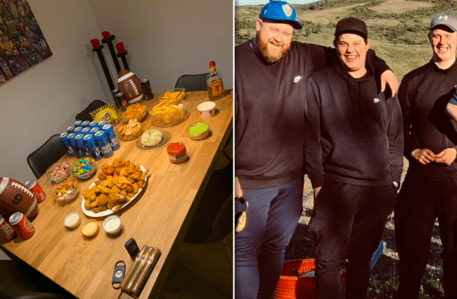 Hann segir það vera lykilatriði þegar horft er á Ofurskálina að vera með góðar veitingar. Hópurinn hittist snemma á sunnudeginum fyrir leik og byrjar að undirbúa matinn.