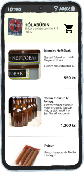 Saknaru Hólabúðarinnar? Nú getur þú verslað alla þá hluti sem búðin hafði að geyma upp í sófa. Víngerðarvörurnar vinsælu, tóbaksvörurnar góðu og örfáar vörur úr kælinum. Ath ekkert aldurstakmark er á neinum vörum.