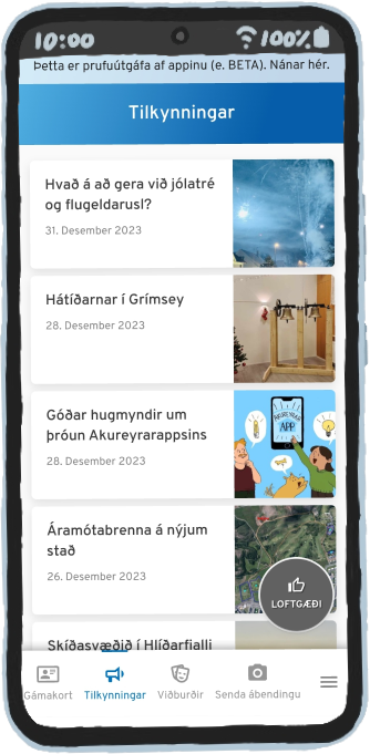 Hægt er að nálgast upplýsingar um viðburði á Akureyri, sjá tilkynningar og ýmislegt fleira Akureyrartengt. Einnig ef henda þarf rusli þá eru gömlu góðu klippikortin komin á stafrænt form. Gerðu daginn skemmtilegri með því að nota app til þess að henda rusli.