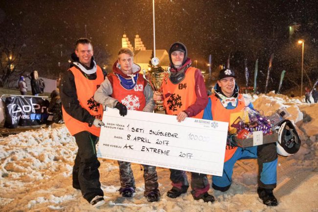 Fjórir snjósleðakappar tókust á um Eimskips-bikarinn og var það hann Hákon Gunnarsson, 19 ára drengur frá Akureyri, sem hreppti fyrsta sætið.