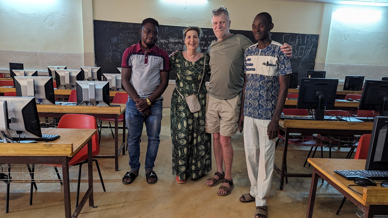 „Ég sá strax að hér var aldeilis hægt að taka til hendinni. Tölvustofa er við skólann og þar voru 20 ára gamlar tölvur og allt úr sér gengið. Þegar ég kom heim vissi ég að verið var að fartölvuvæða VMA og ég bauðst til að gefa tölvunum sem verið var að leggja þar framhaldslíf í Afríku. Skólastjórnendur í VMA samþykktu að gefa mér gömlu tölvurnar sem ég tók og fór með út í verbúð, setti þær upp og sendi hingað niður eftir. Í síðustu ferð setti ég síðan upp, ásamt Magnúsi Kristinssyni hjá Nýherja, tölvustofu með 63 tölvum og nettengdum við þær með búnaði sem Nýherji styrkti verkefnið með.“