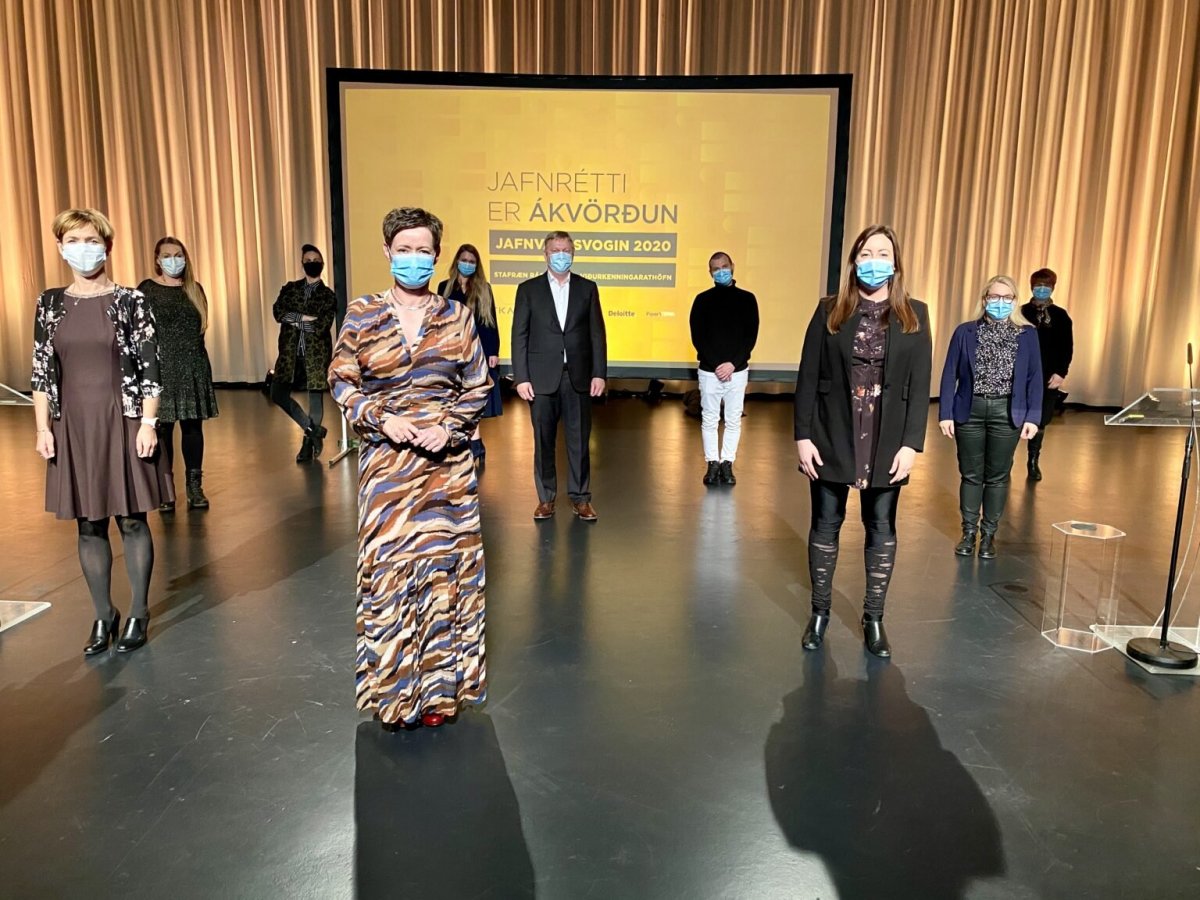 Þar segir: „Jafnvægisvogin, hreyfiaflsverkefni Félags kvenna í atvinnulífinu (FKA), hélt í gær stafrænu ráðstefnuna Jafnrétti er ákvörðun, sem streymt var í beinni útsendingu á vefsíðu RÚV. Þar kynnti Eliza Reid viðurkenningarhafa Jafnvægisvogarinnar, en það eru þeir þátttakendur sem hafa náð að jafna hlutfall kynja í efsta lagi stjórnunar. Á ráðstefnu Jafnvægisvogarinnar árið 2019 hlutu 18 þátttakendur viðurkenningu, en í ár voru viðurkenningarhafar 44.