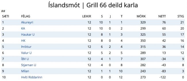 Markaskorarar Akureyrar: Brynjar Hólm Grétarsson 6, Garðar Már Jónsson 6, Arnór Þorri Þorsteinsson 4, Patrekur Stefánsson 3, Jóhann Geir Sævarsson 3, Karolis Stropus 3, Ihor Kopyshynskyi 3, Arnþór Gylfi Finnsson 1, Hafþór Már Vignisson 1, Friðrik Svavarsson 1, Hilmir Kristjánsson 1, Óðinn Freyr Heiðmarsson 1.