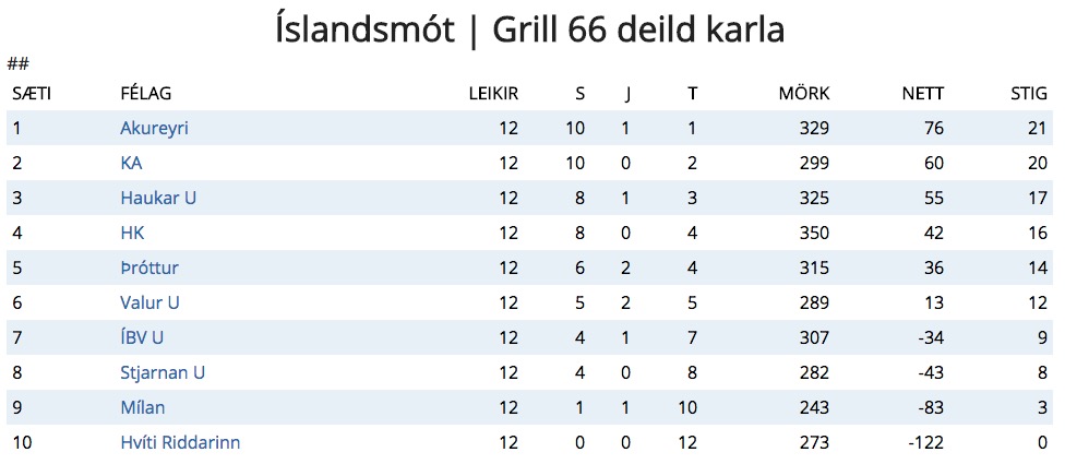 Markaskorarar Mílan: Páll Dagur Bergsson 6, Magnús Már Magnússon 3, Árni Geir Hilmarsson 1, Rúnar Hjálmarsson 1, Trausti Elvar Magnússon 1, Sigurður Már Guðmundsson 1, Jóhannes Snær Eiríksson 1, Ari Sverrir Magnússon 1.