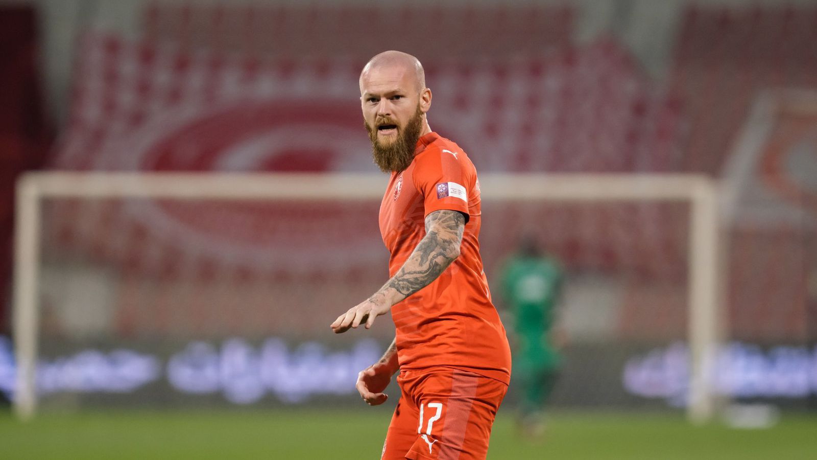 Markið sem Aron skoraði var stórglæsilegt, en hann vann boltann fyrir framan sinn eigin vítateig og skaut svo vel fyrir aftan miðju vallarins yfir markmann Al Kharitiyath. Myndband af markinu má sjá hér að neðan.
