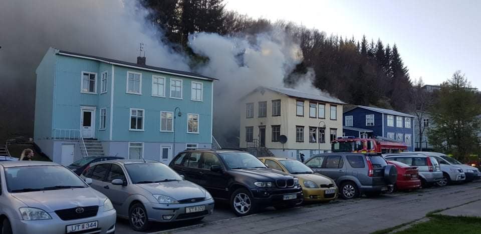 Í tilkynningu á Facebook síðu slökkviliðsins eru Akureyringar beðnir um að halda sig frá vettvangi eldsins og nærliggjandi götum til þess að tryggja örugga leið björgunarliðs til og frá vettvangi.