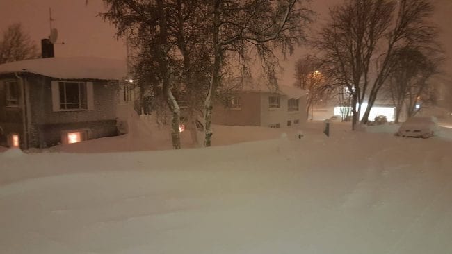 Allt skólahald hefur verið fellt niður á Akureyri og í nágrenni og hefur lögreglan hvatt fólk til þess að vera ekki á ferðinni að óþörfu.