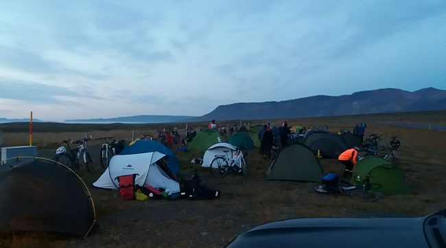 Við þjóðveg eitt, rétt við brúnna yfir Gljúfurá í Húnavatnssýslu, voru yfir þrjátíu manna hjólreiðahópur frá Póllandi saman komin og búin að tjalda, kveikja eld, og byrjaður að létta á sér.