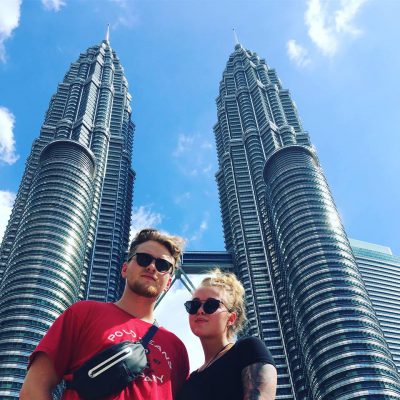 Egill ásamt Þórdísi kærustu sinni við Petronas turnana
