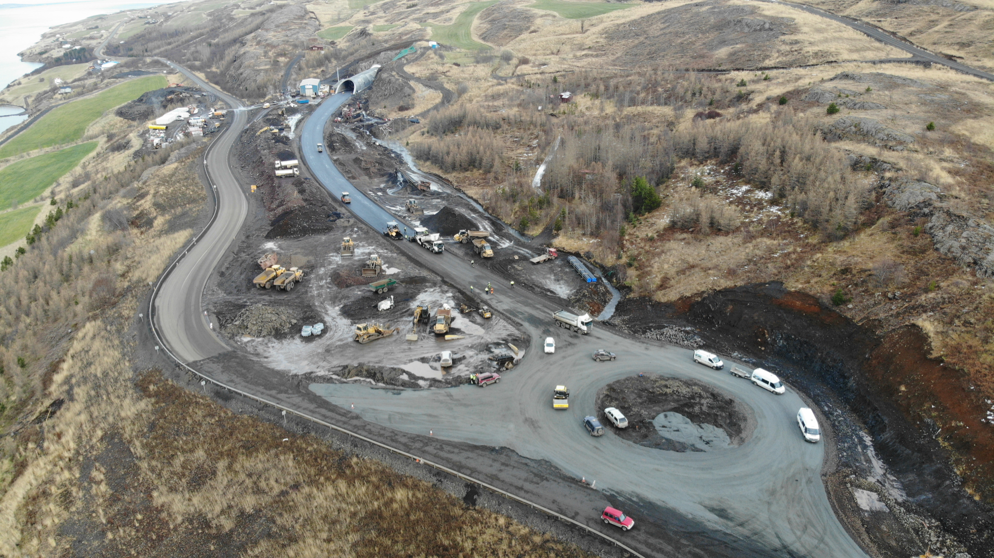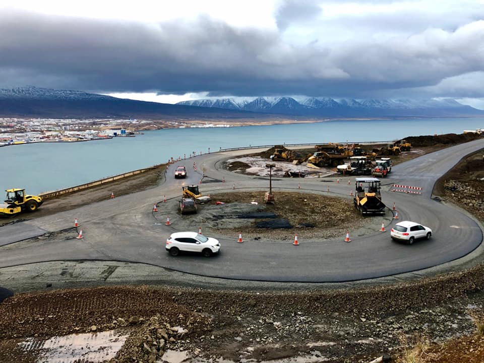 Búið er að malbika hringtorgið við Vaðlaheiðargöng Eyjafjarðarmegin, en verkið kláraðist í dag. Veður hefur verið hagstætt síðustu daga til að malbika en búið er að malbika tenginguna við þjóðveginn og alveg inn að gangamunanum.