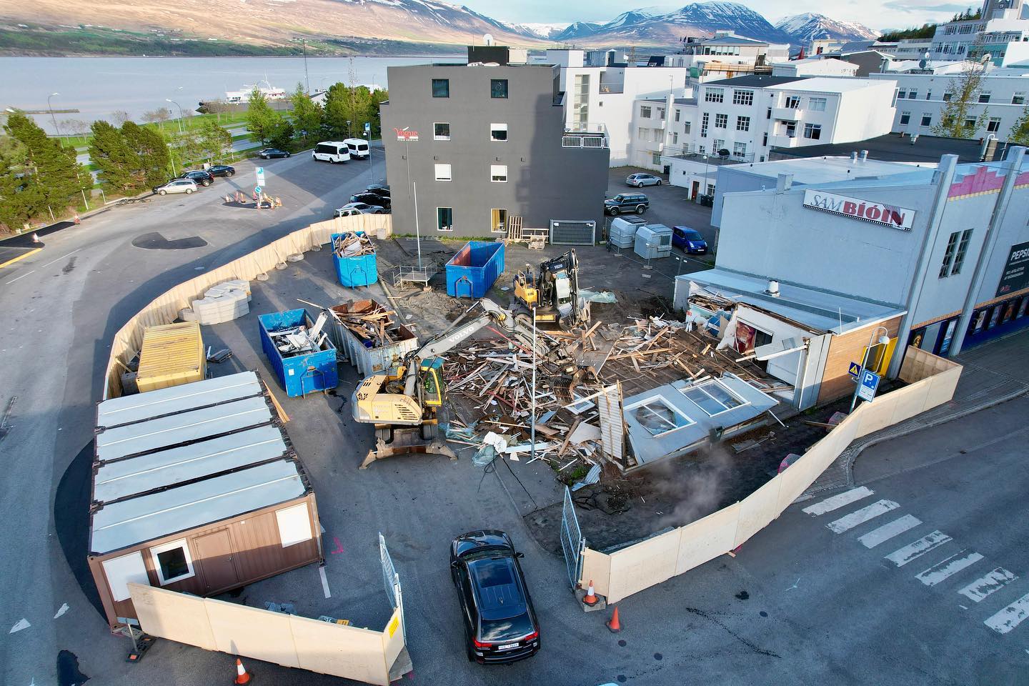 Húsnæðið í miðbæ Akureyrar þar sem Nætursalan stóð til margra ára hefur verið rifið. Helgi Steinar Halldórsson birti myndir af svæðinu í Facebook hópnum Miðbærinn. Akureyri.