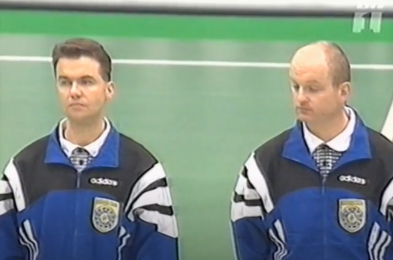 Meðfylgjandi mynd (skjáskot af Youtube) er tekin við upphaf úrslitaleiksins árið 1996. Stefán er til vinstri á myndinni, honum á vinstri hönd er Rögnvald Erlingsson.