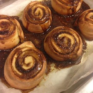 15. Setjið kremið á snúðana þegar að þeir koma útúr ofninum svo að það bráðni yfir þá