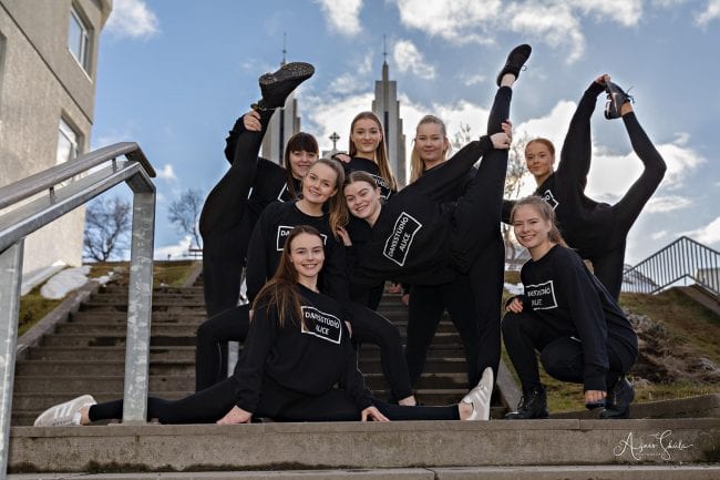 Unnur Anna, Valentína Björk, Aldís, Auður Anna, Ingibjörg Rún, Jóna Marín, Urður og Bjarney Sara keppa sem Small group í flokki 25 ára og yngri í Modern Lyrical