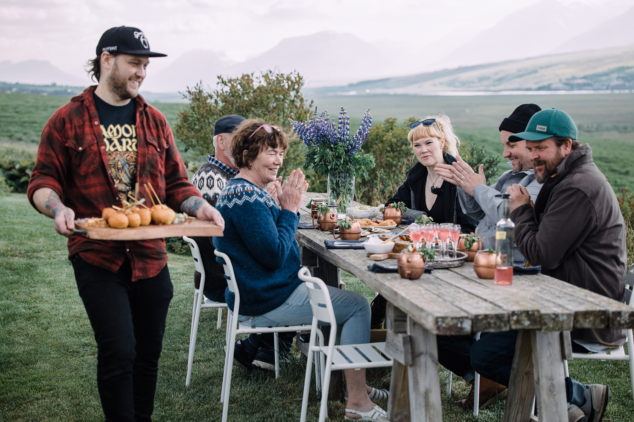 Fyrsta stopp er Lambinn á Öngulstöðum hvar Jóhannes, frændi Gunnars, og frú hafa byggt upp ferðaþjónustu. Matthew er kokkur frá Portland Oregon eldar mat sem leggur áherslu á hráefni úr nærumhverfinu og Aurora blandar hanastél fyrir Dóra í fallegu landslagi Eyjafjarðarins. Veisla er svo haldin úti með húsráðendum og þeim hjónum.