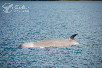 Sést hefur til eiginlegs höfrungs (Delphinus delphis) í hvalaskoðunarferðum Eldingar í Eyjafirði í gær og í dag. Dýrið var eitt á ferð í grennd við Akureyri.