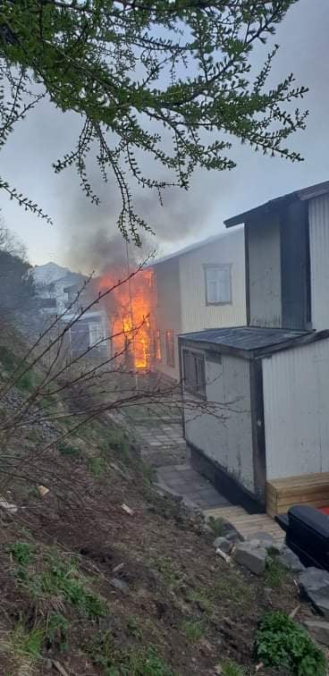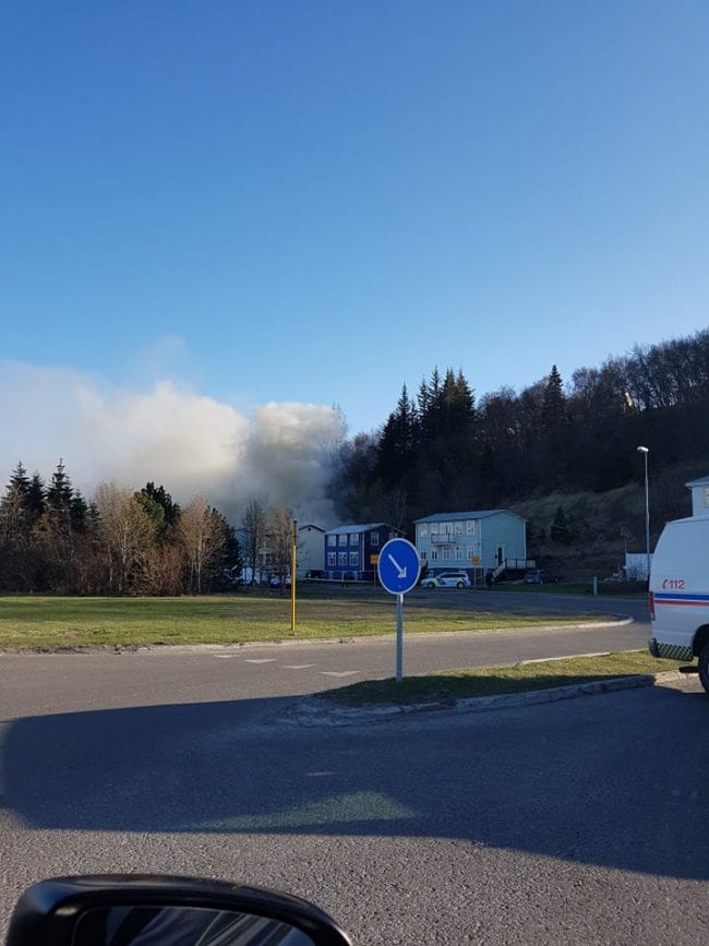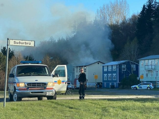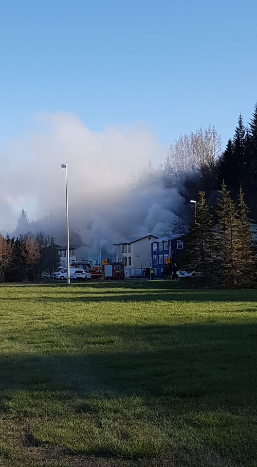 Slökkviliðið staðfesti við fréttastofu rúv.is að einn hafi verið í húsinu og var hann fluttur alvarlega slasaður á bráðadeild Sjúkrahússins á Akureyri.