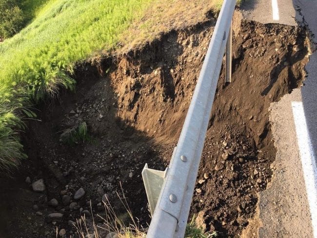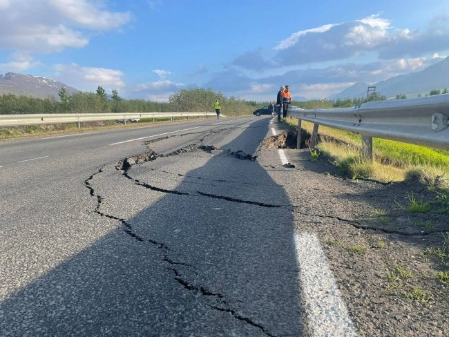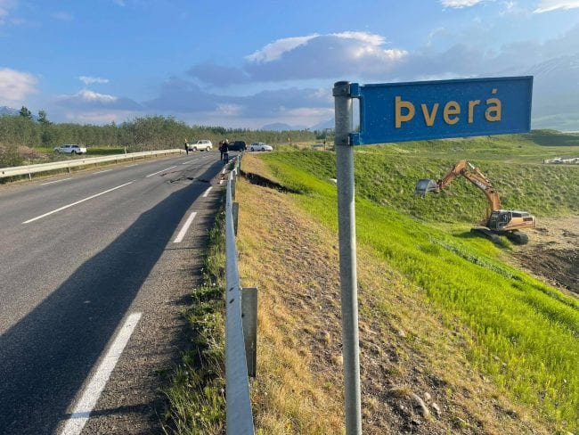 Lögreglan á Akureyri hefur lokað brúnni yfir Þverá í Eyjafjarðarsveit vegna vatnavaxta og skemmda í veginum. Hægt er að fara Eyjafjarðarbraut vestari áfram en það var á fimmta tímanum í dag sem vegfarandi tilkynnti skemmdirnar til Vegagerðarinnar. Unnið er að viðgerðum á veginum, en gríðarlegir vatnavextir hafa verið á norðurlandi síðustu daga vegna hita og mikils vinds.