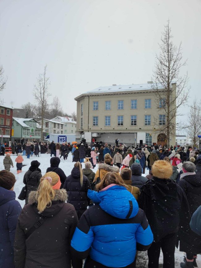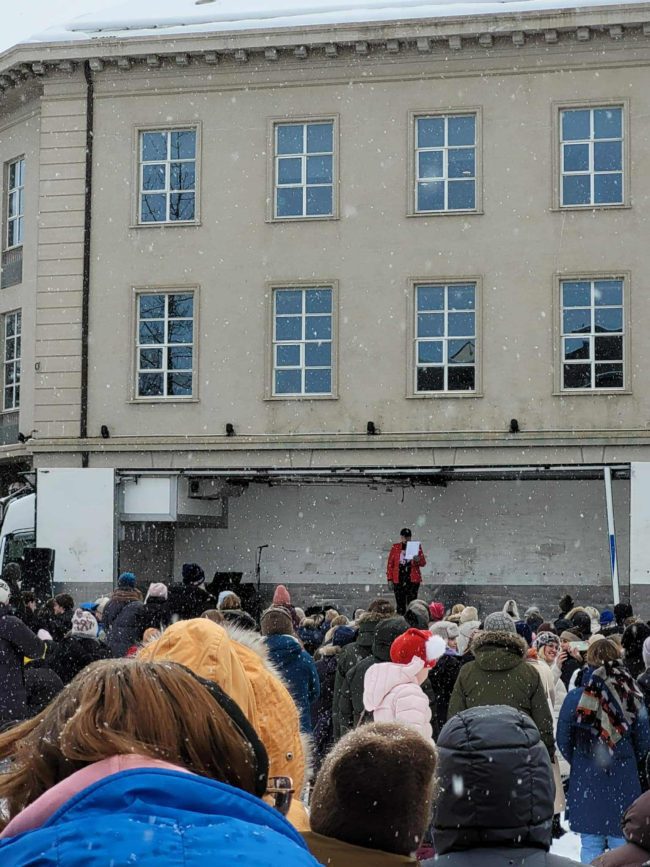 Í dag er Kvennaverkfall um land allt og haldinn var samtöðufundur á Ráðhústorginu. Með kvennaverkfalli taka konur og kvár höndum saman og leggja niður launuð sem ólaunuð störf nú þegar fimmtíu ár eru liðin frá fyrsta kvennaverkfallinu á kvennaári Sameinuðu Þjóðanna árið 1975. Fjölmennt var á fundinum og lét mannskapurinn ekki örfá snjókorn og kulda á sig fá. Þeir sem fóru með erindi voru: