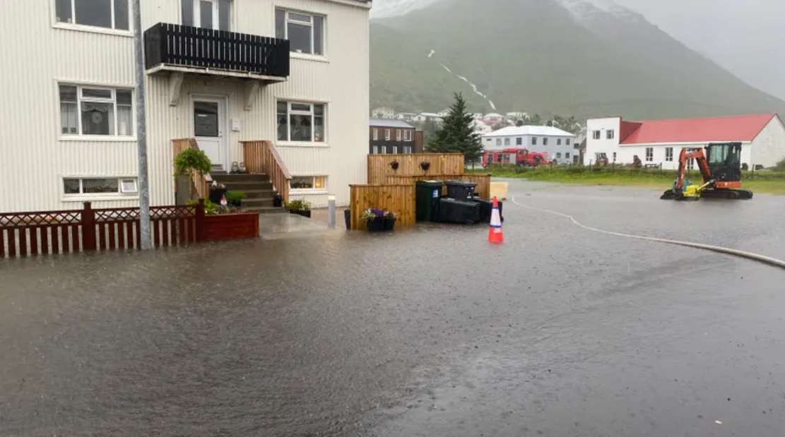 Dælubílar frá Fjallabyggð, Akureyri og Dalvík eru á staðnum. Í samtali við RÚV sagði Sigríður Ingvarsdóttir bæjarstjóri Fjallabyggðar: „Það eru að byrja að fyllast brunnar líka við Eyrarflöt sem er syðst í bænum. Þar eru dælur í fráveitukerfinu sem virðast ekki hafa undan þessu mikla vatnsmagni. Því miður virðist bara vera að bæta frekar í úrkomuna heldur en að draga úr henni.“