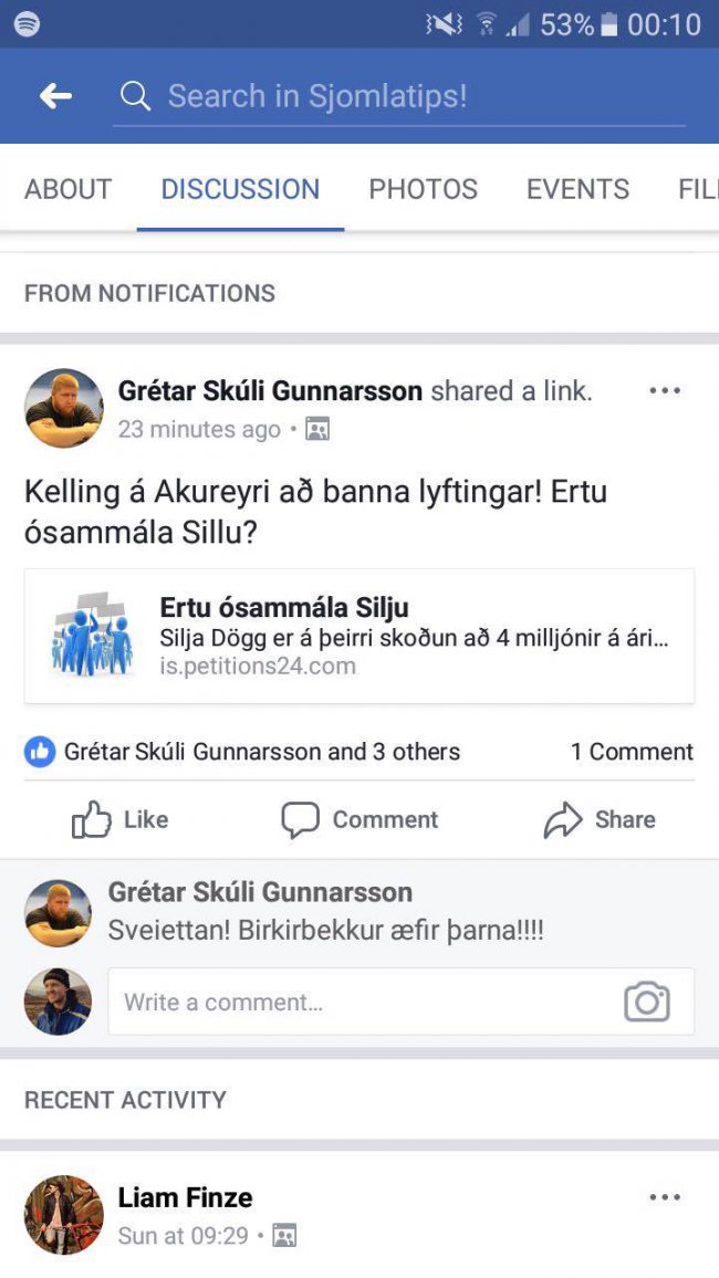 ,,Kelling á Akureyri að reyna að banna lyftingar! Ert þú ósammála Sillu?“