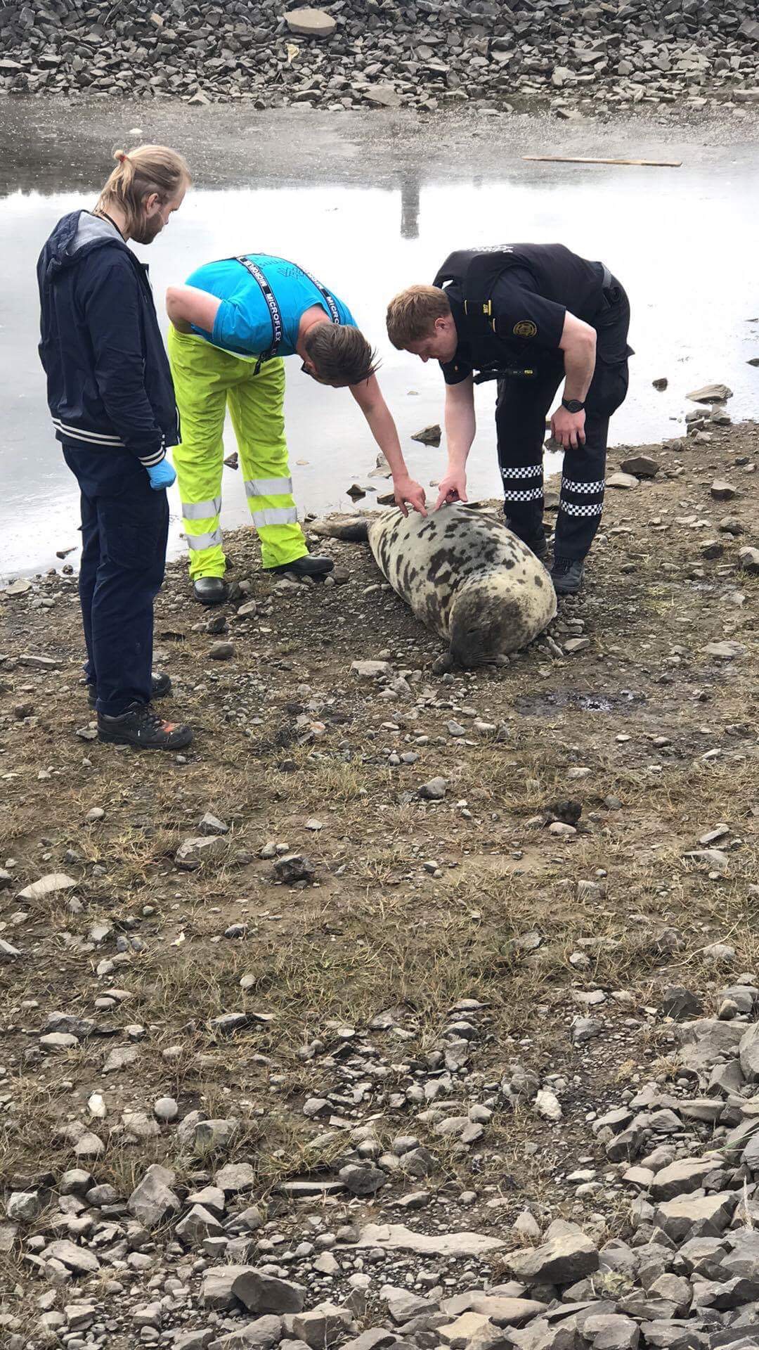 Umferðarstöplum komið fyrir á bryggjunni á Árskógssandi