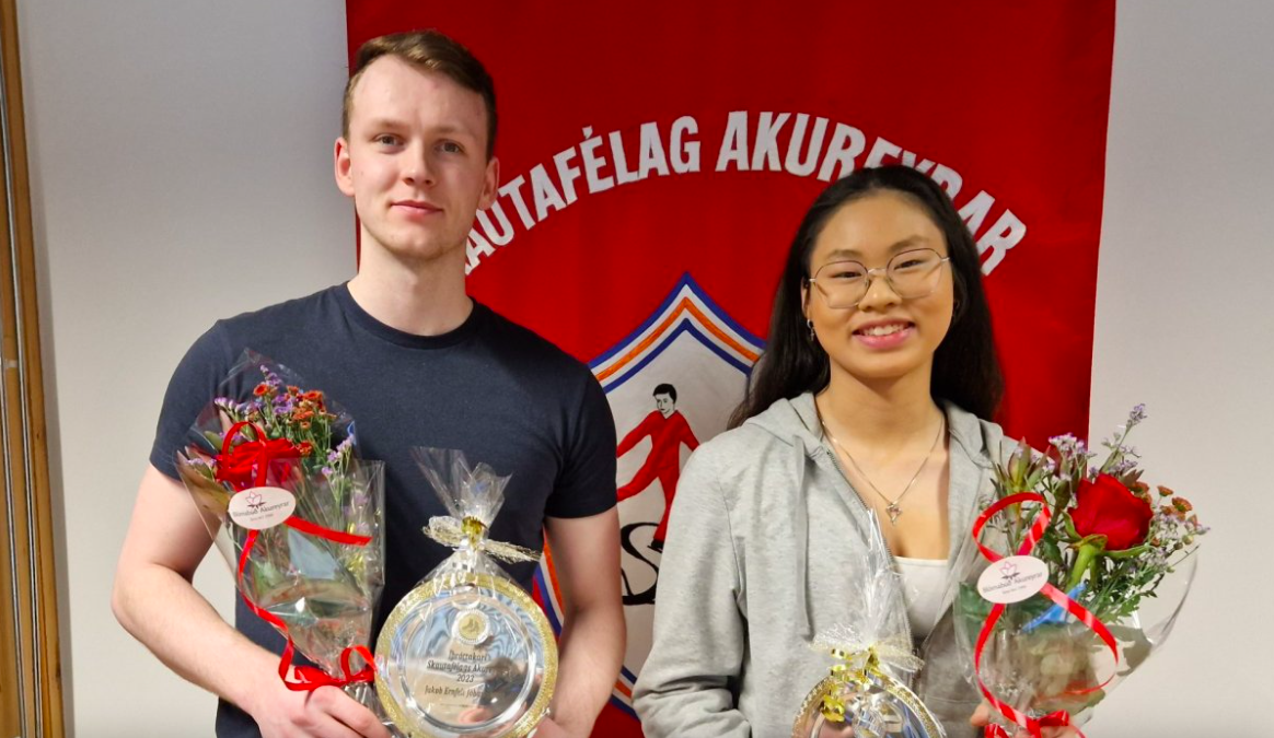 Freydís Jóna Jing Bergsveinsdóttir og Jakob Ernfelt Jóhannesson hafa verið valin íþróttafólk SA fyrir árið 2023 og voru þau heiðruð í gærkvöld í nýja félagssal Skautafélagsins. Freydís var einnig valin skautakona ársins hjá listskautadeild SA á dögunum og Jakob íshokkímaður íshokkídeildar SA árið 2023. Bæði tvö eru tilnefnd af Skautafélagi Akureyrar til Íþróttafólks Akureyrar. Þetta kemur fram á vef SA þar sem segir um þau:
