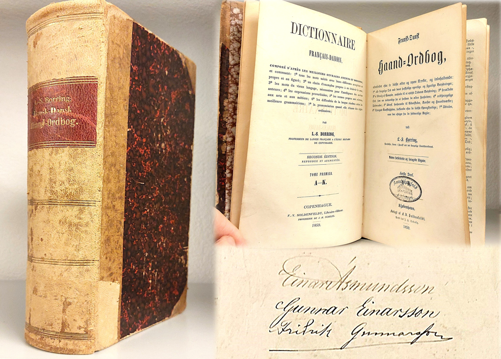 Víða leynast gamlar bækur sem sjaldan eða aldrei eru dregnar fram úr hillum eða teknar upp úr kössum. Þessi gamla skrudda á sér skemmtilega sögu. Frönsk-dönsk orðabók (Fransk-dansk Haandordbog) frá L. S. Borring, gefin út í Kaupmannahöfn árið 1859. Einar Ásmundsson alþingismaður Eyfirðinga 1874–1885, oftast kenndur við Nes í Grýtubakkahreppi er upphaflegur eigandi bókarinnar. Örlítil forsaga. Kaþólskur prestur, Boudoin að nafni, var gestur Einars í Nesi um allnokkurt skeið þegar sá fyrrnefndi ferðaðist um landið árið 1868. Boudoin þessi var maðurinn á bak við þá ákvörðun að kosta tvo unga Íslendinga til náms við kaþólska skóla erlendis. Jón Sveinsson, Nonni (f1857) var annar þessara tveggja Íslendinga. Hinn var Gunnar (f1853) sonur Einars í Nesi. Eins og öllum lesendum Nonnabókanna er kunnugt um sigldi Nonni með skútunni Valdemar frá Rönne til Frakklands til náms árið 1870 (með árs viðdvöl í Danmörku). Við komuna til Danmerkur eftir fimm vikna siglingu, hittust Nonni og Gunnar. Sá síðarnefndi hafði komið til Danmerkur á undan Nonna með ferðatösku sem m.a. innihélt orðabók sem pabbi hans hafði gefið honum áður en sonurinn hélt á vit ævintýranna. Allir þekkja framhaldið hjá Nonna. Gunnar hélt hins vegar heim til Íslands aftur vorið 1871 og auðvitað var orðabókin með í för. Eftir þetta gekk hún manna á milli innan fjölskyldunnar þar til árið 2002 að Friðrik G. Gunnarsson, langalangafabarn Einars í Nesi afhenti hana Amtsbókasafninu á Akureyri þar sem hún er varðveitt.