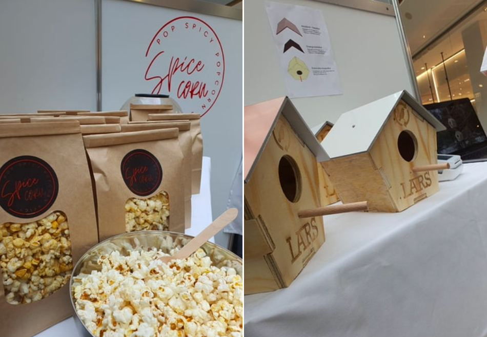 Íris Ragnarsdóttir hefur kennt frumkvöðlafræði í VMA á vorönn og að þessu sinni var nemendum skipt í tvo hópa sem þróuðu og markaðssettu sínar vörur, annars vegar popp með tælenskum kryddum og hins vegar fuglahús úr endurunnu efni. Fab Lab Akureyri lagði nemendum lið við hönnun og samsetningu húsanna.