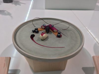 ,,Þegar ég komst inn í „pastry“ herbergið, sem er sérstakt herbergi fyrir eftirrétta- og konfektgerð, þar sem herbergishitinn er hafður í ca. 18 gráðum var ég sérstaklega glaður að lítið sem ekkert brotnaði eftir tvær rútuferðir, flugferð og auka ferðalög þar á milli. Hefði eitthvað brotnað á ferðalaginu hefði ég aldrei haft tíma aflögu til að gera nýtt.“