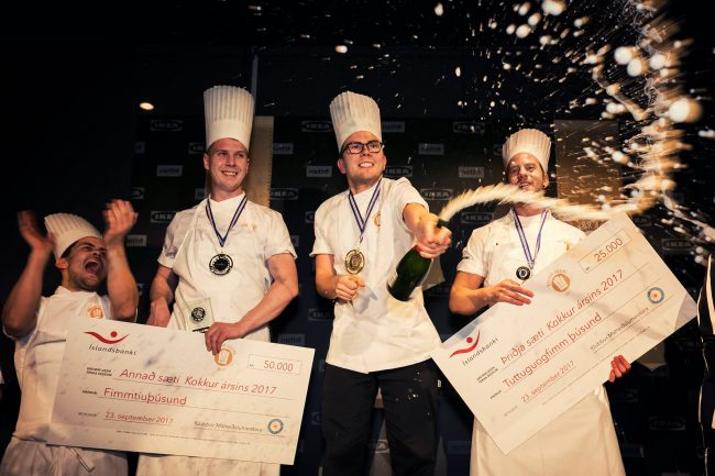 Sigurvegarar í Kokkur Ársins 2017. Frá vinstri: Garðar Kári Garðarsson, 2. sæti. Hafsteinn Ólafsson, 1. sæti, Víðir Erlingsson, 3. sæti.