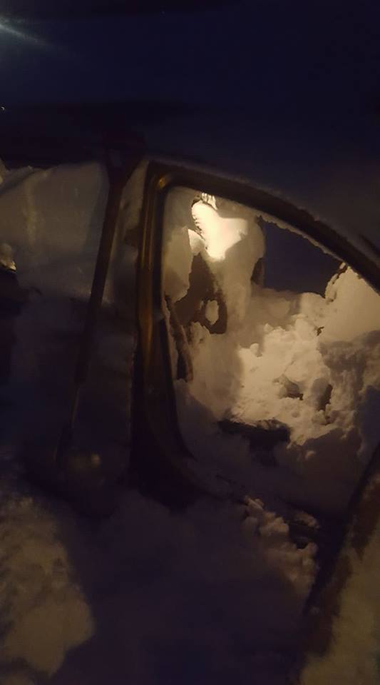 Bíllinn hafði fyllst af snjó og ómögulegt var að komast inn í hann. Haukur segir þó að það hafi reynst nokkuð auðvelt að tæma bílinn. „Það var svo mikið frost í gær þannig að ég einfaldlega gat mokað mestmegnis af honum út,“ segir Haukur í spjalli við Kaffið.