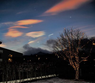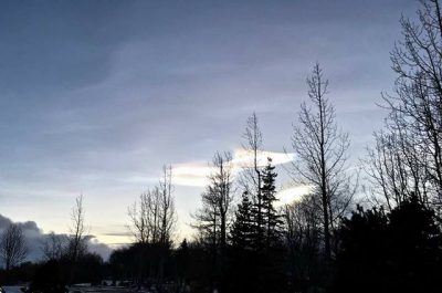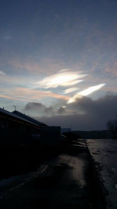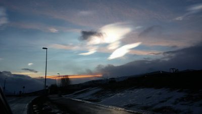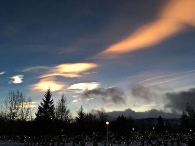 Í annað skipti á aðeins nokkrum dögum mátti sjá tvö glitský sveima yfir bænum. Margir lesendur hafa sent okkur myndir í dag og við birtum þær hér.