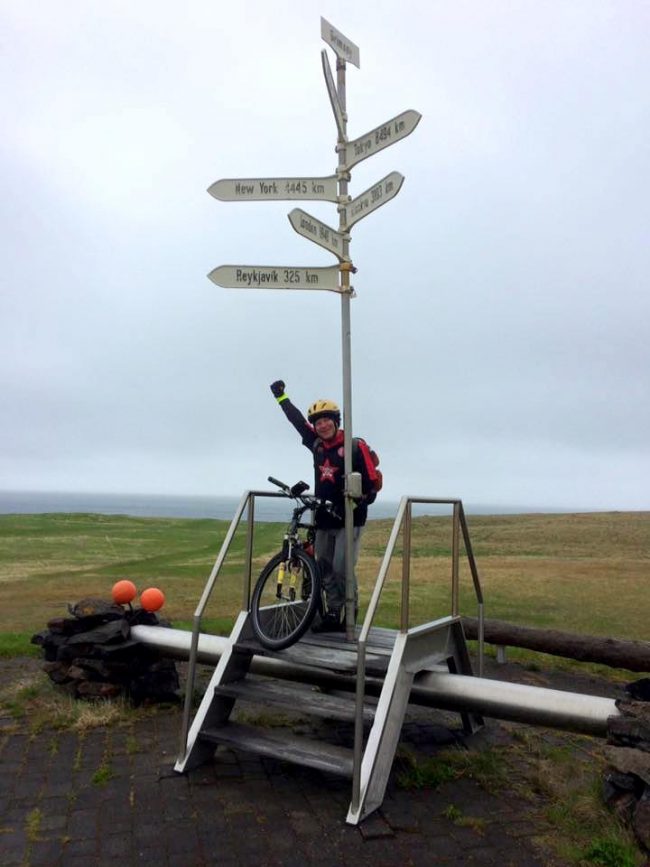 Martin lagði af stað í ferðalagið sitt 20.maí síðastliðinn og kom til Grímseyjar í dag með ferjunni Sæfara frá Dalvík. Martin hyggst dvelja í Grímsey yfir helgina og halda síðan heim á ný sömu leið og hann kom.