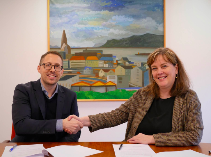 Mynd: Heilbrigðisráðuneyti -/ME. Svandís Svavarsdóttir heilbrigðisráðherra og Kristján Þór Magnússon sveitarstjóri Norðurþings við undirritun samkomulags um byggingu hjúkrunarheimilisins fyrr á þessu ári