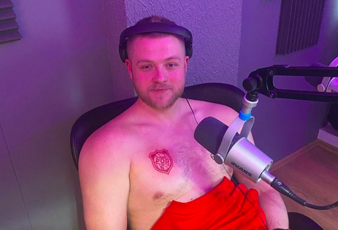 Halldór Kristinn Harðarson, annar þáttastjórnandi hlaðvarpsins Bannað að dæma, lét húðflúra sig við tökur á þættinum í gærkvöldi.
