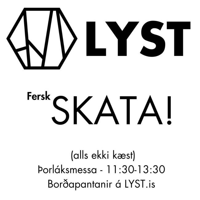 Þeir sem ekki kæra sig um kæsta skötu en vilja þó taka þátt í skötuhefðinni geta gætt sér á ferskri skötu á LYST í Lystigarðinum frá klukkan 11:30 til 13:30 á Þorláksmessu. Borðapantanir á LYST.is