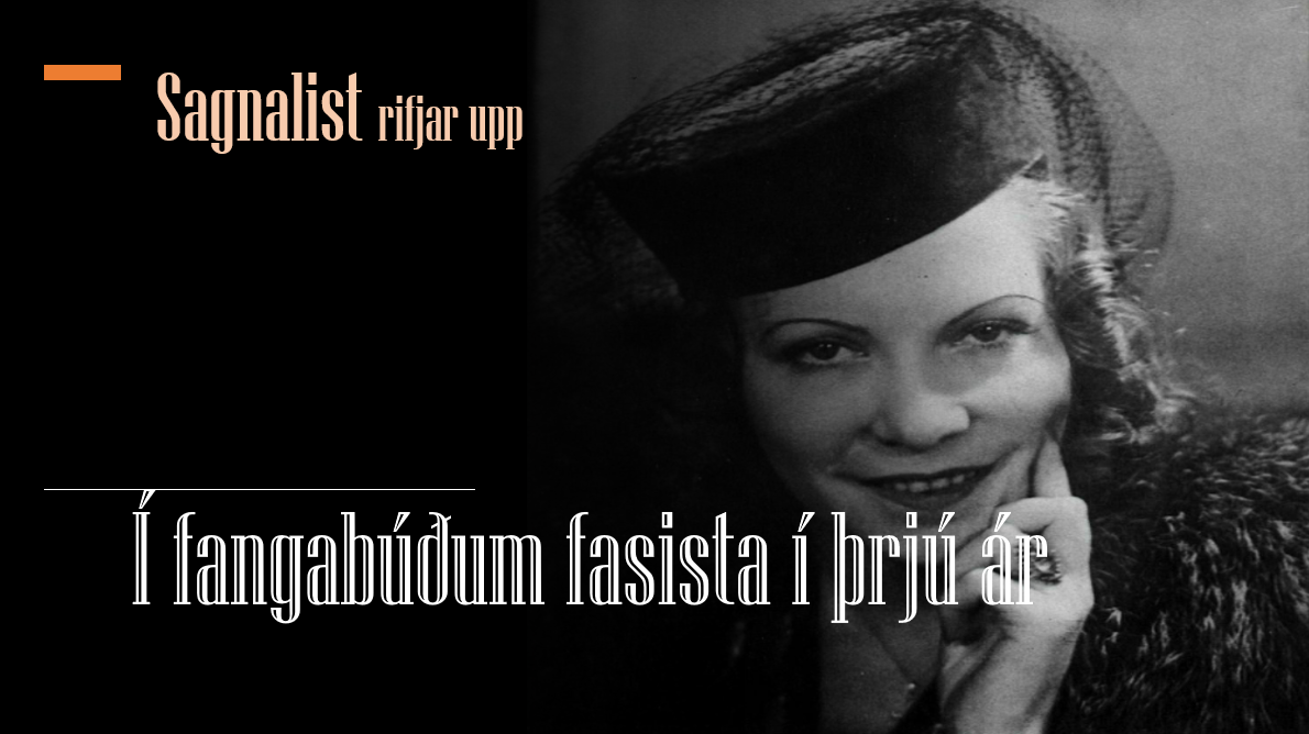 Ég vissi það eitt, að hún hafði lent í fangabúðum fasista á Ítalíu og ekki alltaf átt sjö dagana sæla og þegar ég á dögunum frétti, að hún hefði komið í stutta heimsókn til Íslands, fór ég þess á leit við hana, að hún segði mér meira frá þessum tíma. Hún varð við þeirri beiðni og dag einn, er úti geysaði stormur og hríðarbyljir dundu á gluggum, sátum við saman í hlýrri og notalegri stofu vestur á Högum og hún sagði mér undan og ofan af því, sem á daga hennar hafði drifið, þar til hún kom til Bandaríkjanna í lok styrjaldarinnar.