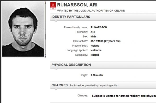 Alþjóðalögreglan Interpol hefur gefið út handtökuskipun á hendur Ara Rúnarssyni vegna vopnaðs ráns og líkamsárásar (e. armed robbery and physical assault) sem átti sér stað á Akureyri í október 2017. Héraðssaksóknari gaf út ákæru í ágúst síðastliðnum en Ari, sem er 27 ára, var farinn úr landi áður en hún var gefin út. Fréttablaðið greinir frá þessu í gær.