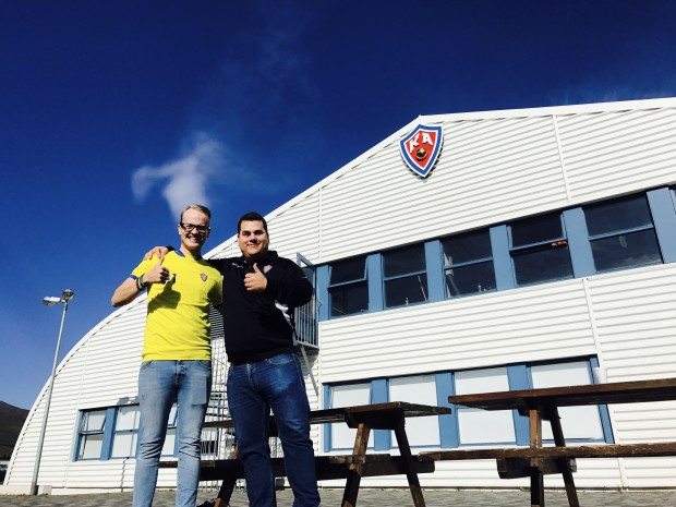 Jón Heiðar ásamt Stefáni þjálfara við undirskrift. Mynd: ka.is.