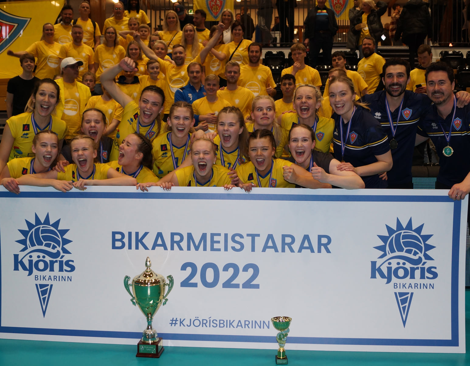 KA vann ótrúlegan sigur á Aftureldingu í oddahrinu um bikarmeistaratitilinn í blaki í gær. Stelpurnar lentur 1-2 undir í viðureigninni en sýndu magnaðan karakter og unnu síðustu tvær hrinurnar og tryggðu sér titilinn.