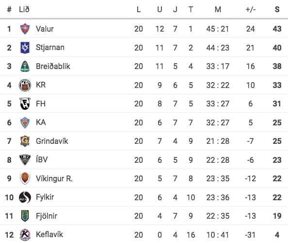 Staðan í deildinni þegar tveir leikir eru eftir: