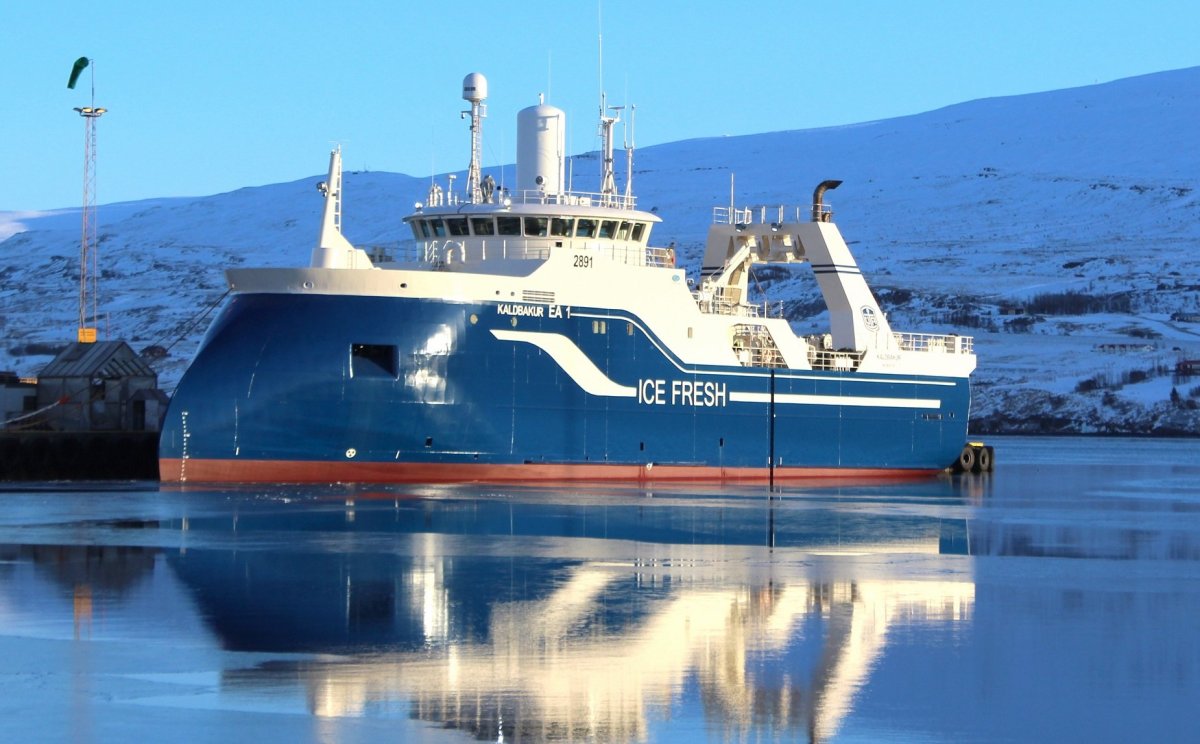 Lokið er við að mála ísfisktogara Samherja, Kaldbak EA 1, í Slippnum á Akureyri, auk þess sem unnið var að ýmsum fyrirbyggjandi endurbótum. Ekki er langt síðan lokið var við svipaðar endurbætur á systurskipum Kaldbaks, Björgu EA 7 og Björgúlfi EA 312.