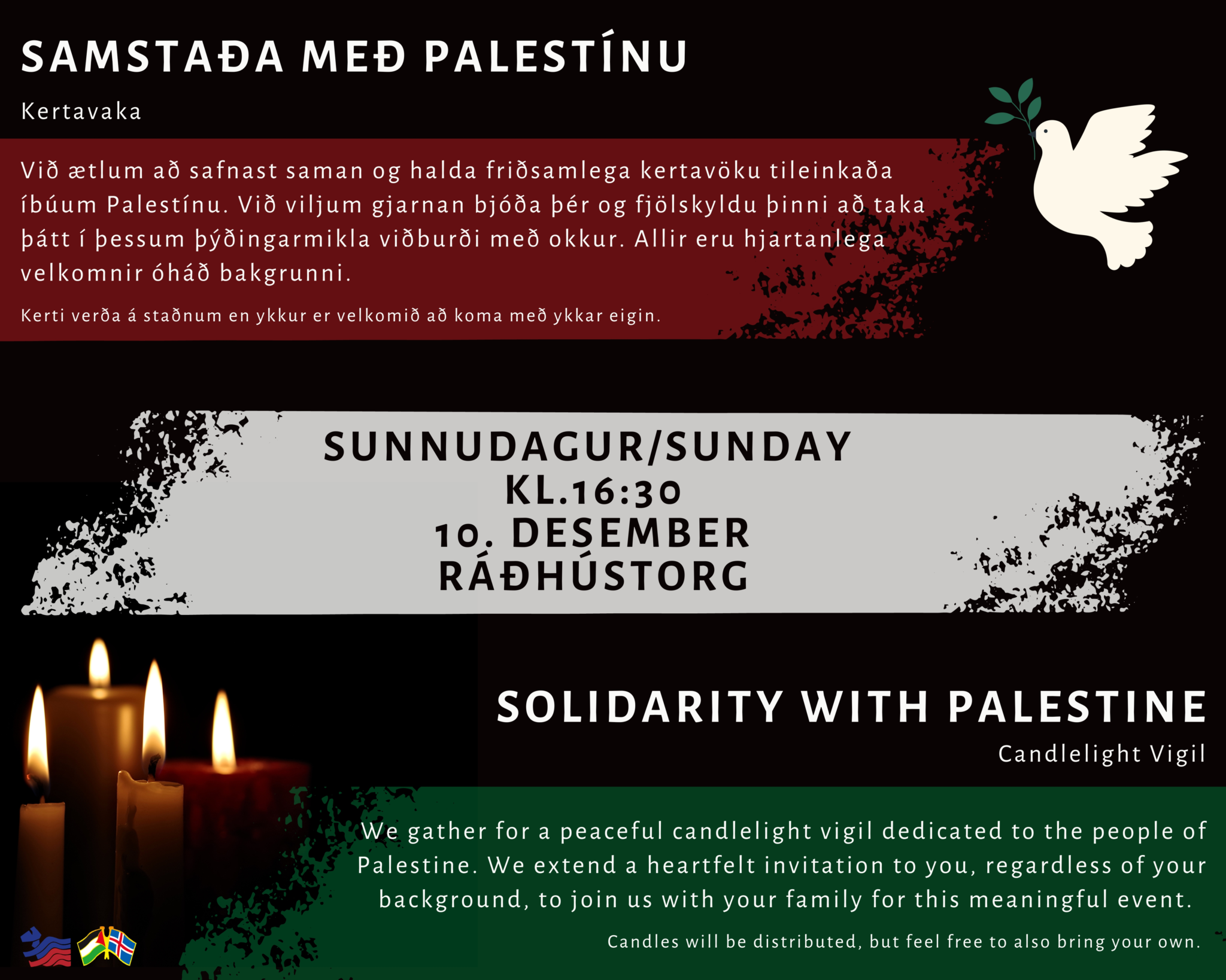 Sunnudaginn 10. desember næstkomandi klukkan 16:30 mun hópur fólks safnast saman á Ráðhústorginu á Akureyri og halda friðsamlega kertavöku tileinkaða íbúum Palestínu.