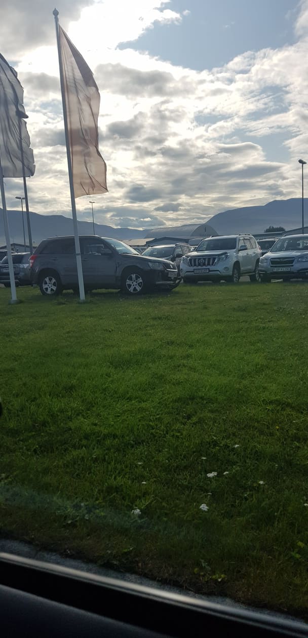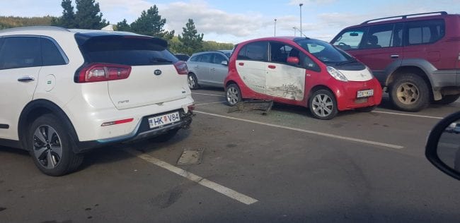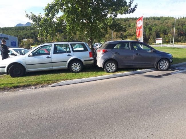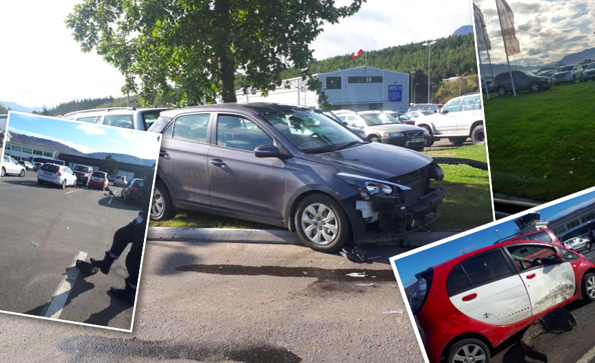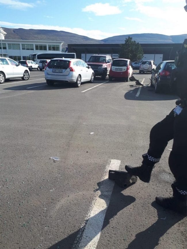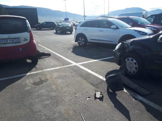 Samkvæmt upplýsingum frá lögreglumönnum á svæðinu var karlmaður á níræðis aldri undir stýri þegar hann keyrði bifreið sinni á bílaplaninu við Akureyrarflugvöll í morgun með þeim afleiðingum að hann keyrði utan í fimm bíla.