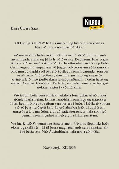 Forsvarsmönnum Kilroy hefur þótt umræðan á Útvarpi Sögu í garð annarra menningarheima heldur einhæf og neikvæð og hafa því skorað á Arnþrúði Karlsdóttur, útvarpsstjóra, og Pétur Gunnlaugsson, útvarpsmann, að þiggja ferð til að heimsækja Jórdaníu.