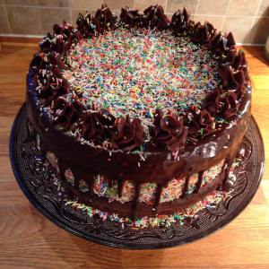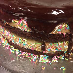 5. Hellið restinni af súkkulaðigljáanum yfir kökuna og leyfið gljáanum að leka niður hliðarnar (rólega!)