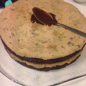 2. Því næst er settur cookie dough botn ofaná og smá dropi af súkkulaðigljáa ofaná hann