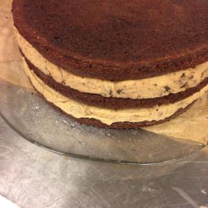 4. Skiptið deiginu jafnt á milli tveggja hringlaga kökuforma (jafn stór og þau sem voru notuð til að baka brownie botnana) og setjið í kæli / frysti á meðan kremin eru gerð klár