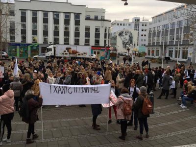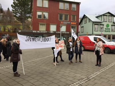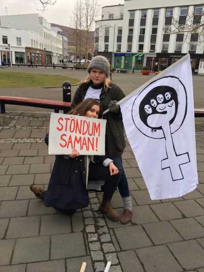 Nokkur hundruð stelpur úr MA og VMA stóðu upp frá skólabókunum í morgun og gengu fylltu liði niður á Ráðshústorg til þess að mótmæla launamuni kynjanna. Þar sem vetrarfrí var í báðum skólunum í gær var ákveðið að halda annan í kvennafríi og að sögn skipuleggjendanna gekk dagurinn frábærlega.